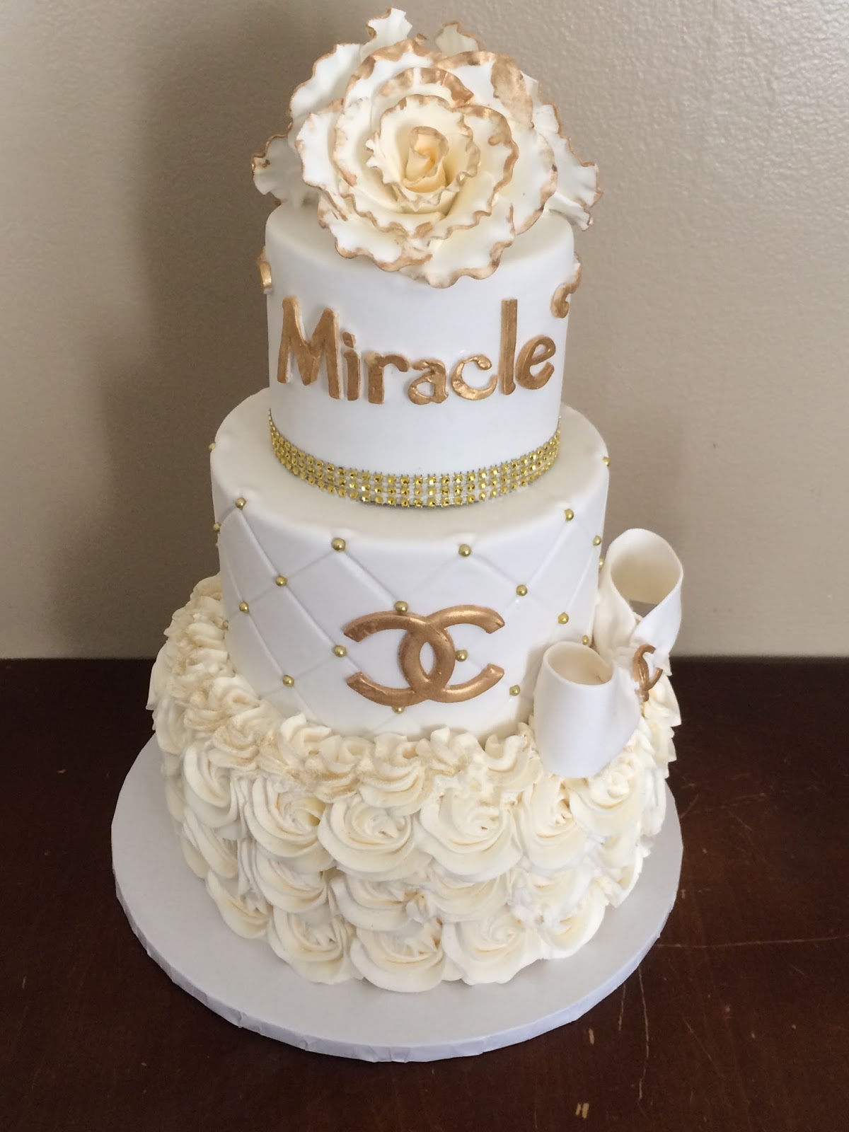 Well another busy week of caking has past and I am back to showcase like I said I would the white and gold version of the pink and silver chanel cake from the other week. I actually think I like this version better. I think it may because of the combination of white and gold gives it an air of sophistication. You all can let me know what you think.